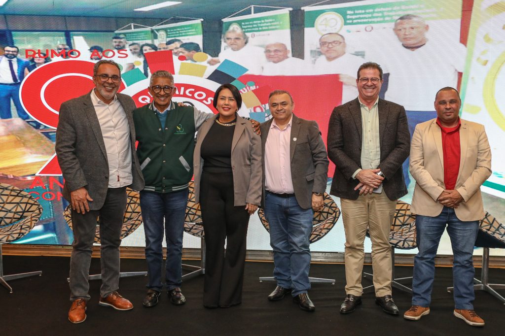 Mesa final de saudações no lançamento rumo aos 90 anos do Sindicato dos Químiocos do ABC realizado no Hotel Braston. Av. Industrial, 885 - Santo André/SP. Fotos Dino Santos. Brasil_10_10_2025.